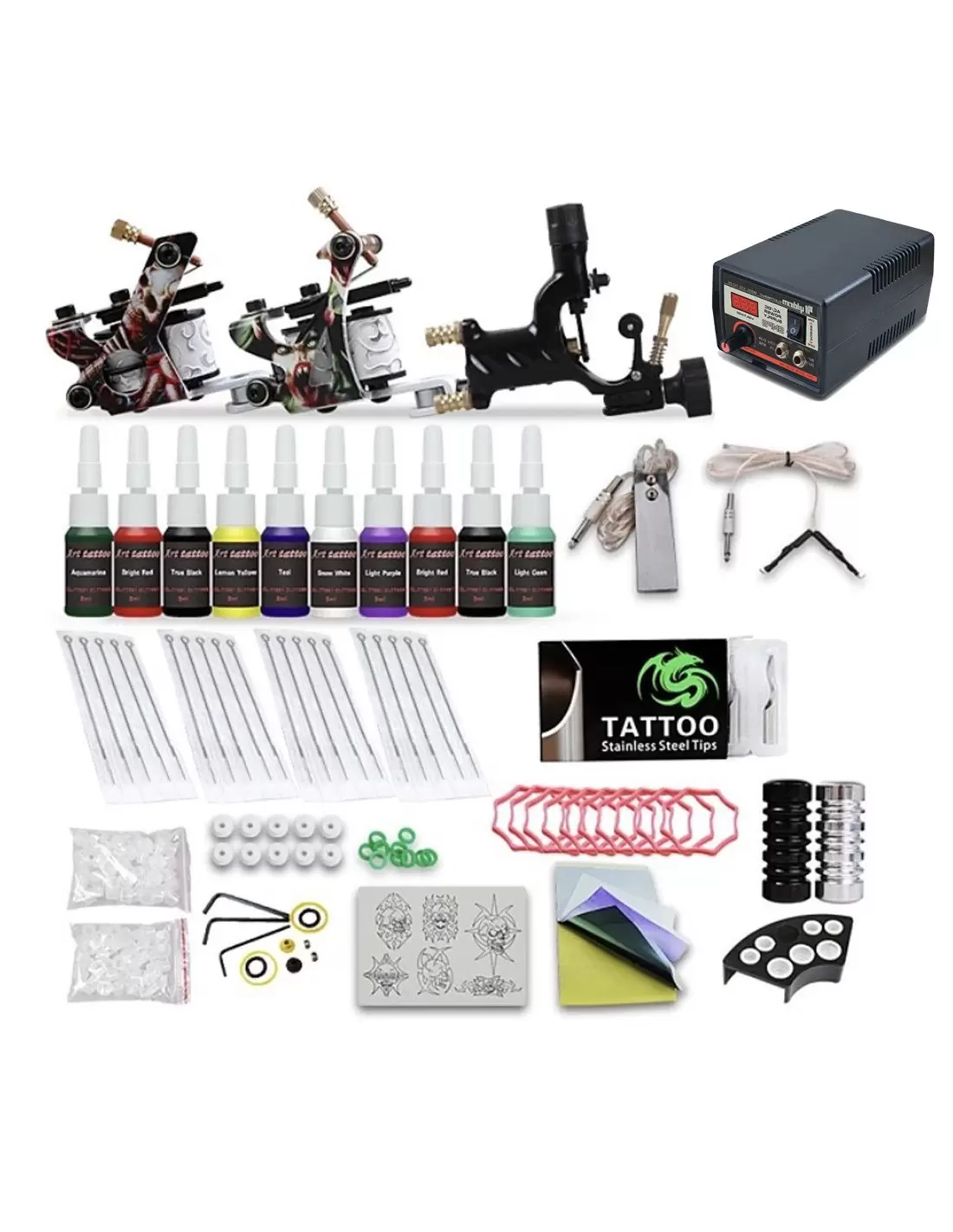 3 Makineli Dragon Hawk Dövme Seti - 2 Bobinli 1 Rotary Makine